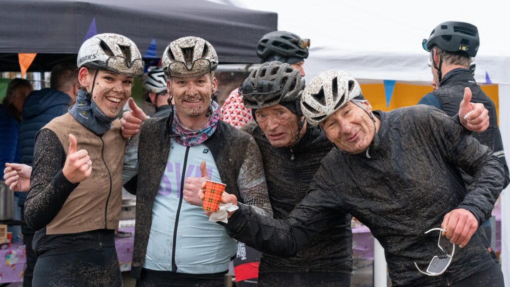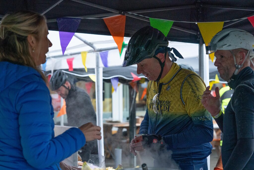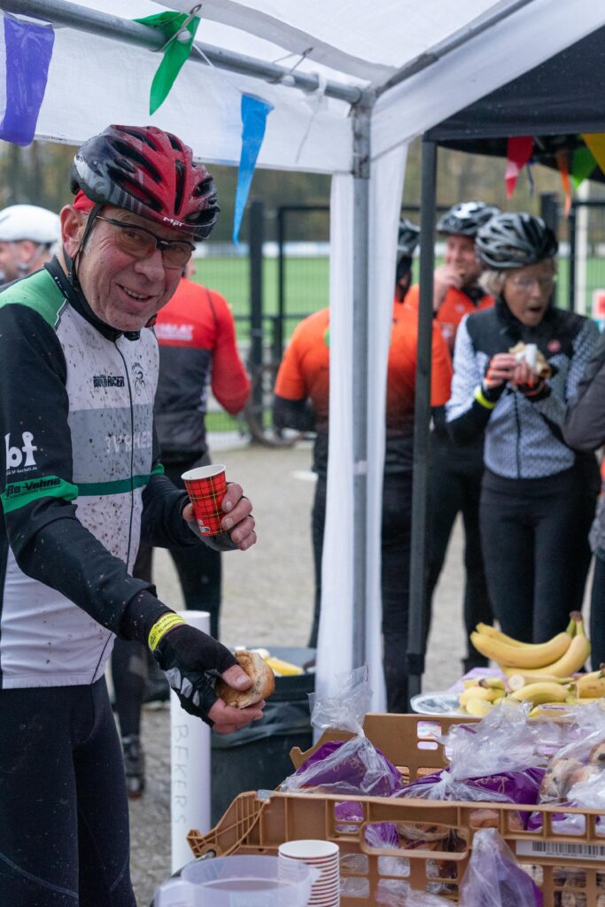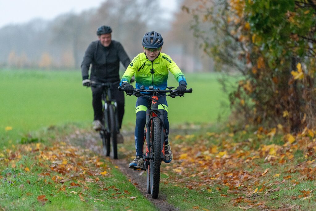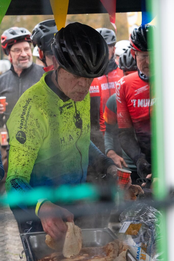 Zondag 16 november vond de jaarlijkse veldtoertocht weer plaats. Ondanks de zachte miezerregen welke neer viel boven Aalten, was de opkomst bijna historisch hoog. Een kleine 500 deelnemers wist de weg naar ons mooie Achterhoekse dorpje tegen de Duitse grens te vinden. Tijdens de tocht was er de mogelijkheid om twee afstanden MTB te rijden en één afstand voor de gravelaar. Dit jaar was voor het eerst gekozen om de pauzeplek bij de start en finisholocatie plaats te laten vinden. Een gouden oplossing. Want hierdoor was het de hele ochtend tot ver in de middag doorlopend gezellig. Op de pauzeplek werden de fietsers verwend met een pannenkoek, bouillon, bananen, stroopwafels en krentenbollen. En uiteraard de gastvrijheid van onze vrijwilligers. En dat deed een ieder goed. Want het was waterkoud dit jaar en niemand kwam zonder enige moddervlekje het terrein op. Van jong tot oud zagen we grote glimlachen op de modderige gezichten. We kijken dan ook terug op een zeer geslaagde veldtoertocht. Volgend jaar vind de tocht plaats op zondag 15 november.